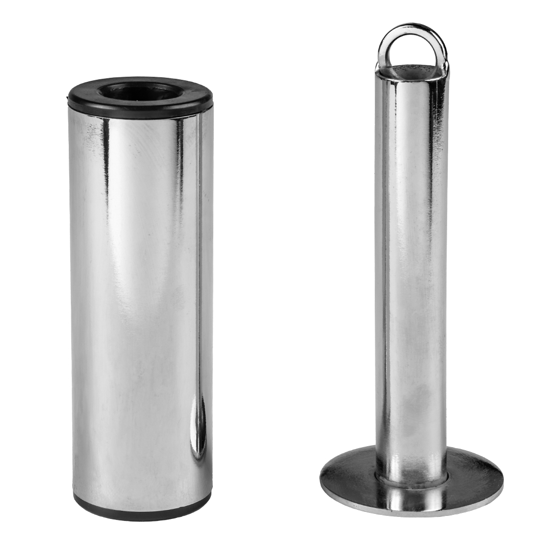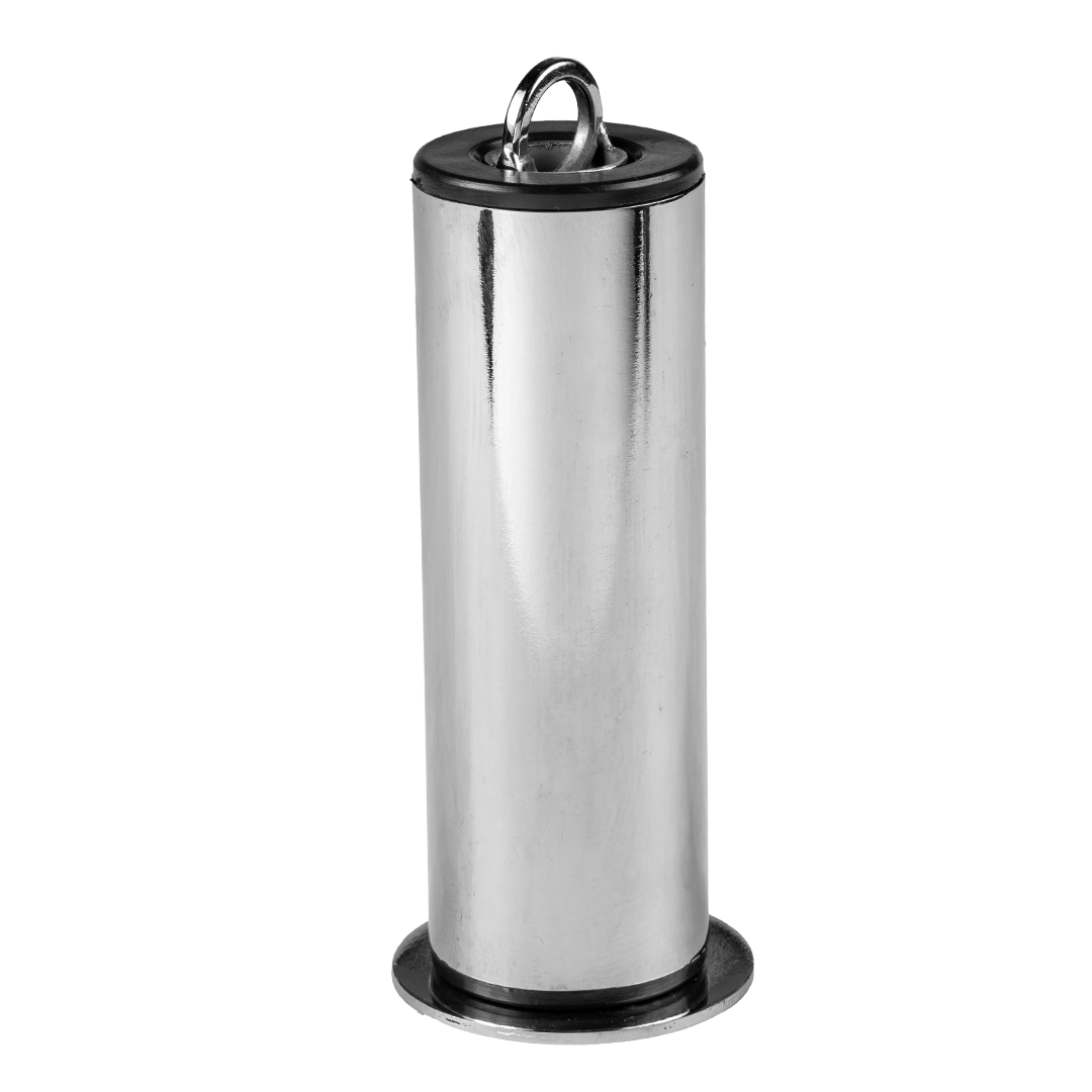 Produto vem com: 1 puxador com acabamento emborrado feito de aço cromado. 1 Adaptador para uso de Anilhas de 50mm (Olimpicas). 1 Adaptador que ao tirar a “capa” fica para uso de Anilhas de 30mm (Standard).